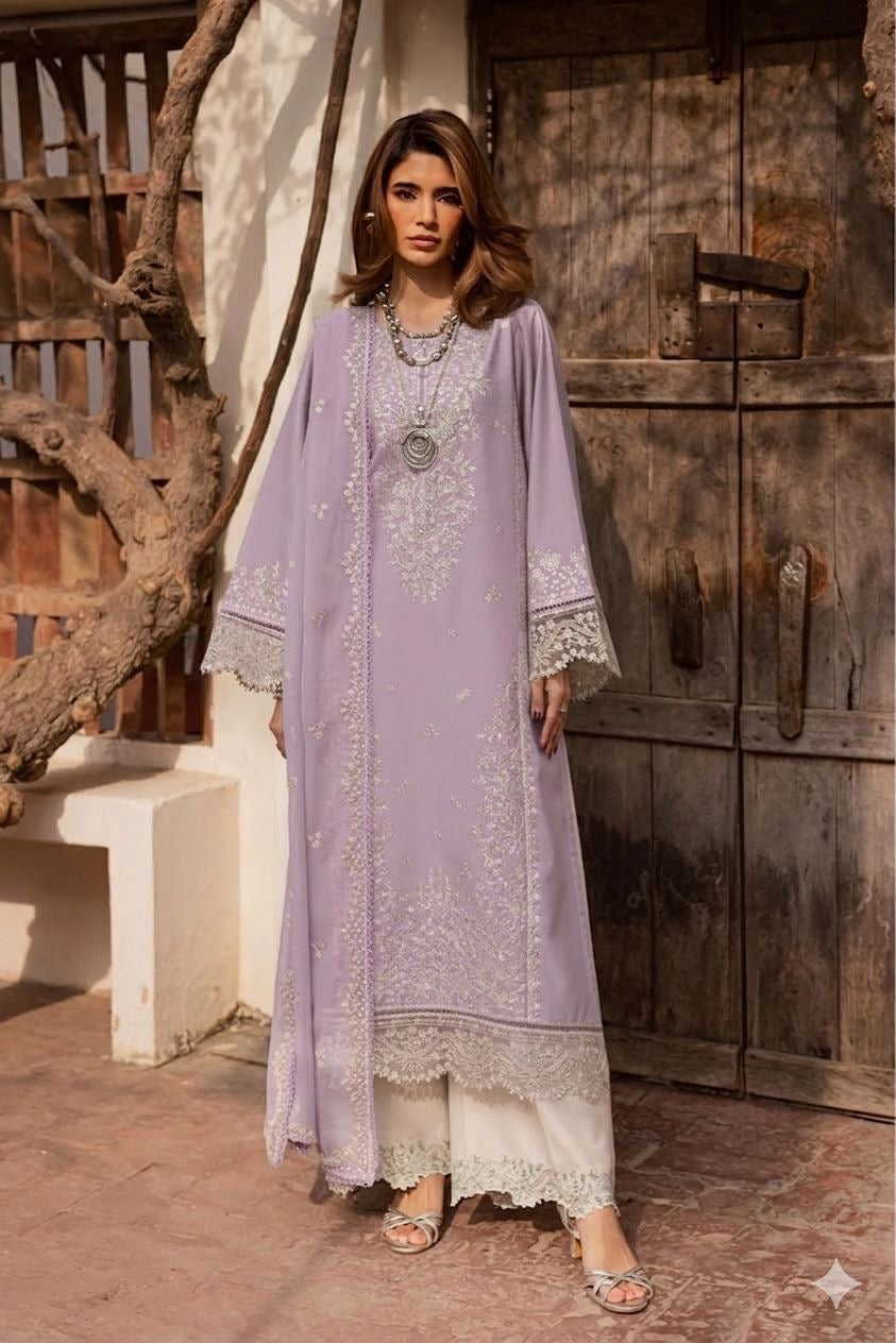 Zarif Purple Embroidered 3 Piece Unstitched Formal Chiffon J-0627-26