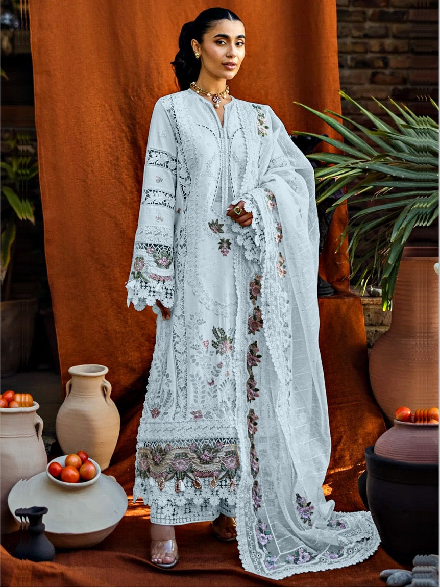 Akbar Aslam Light Blue Embroidered 3 Piece Unstitched Luxury Lawn WQ-0848-26