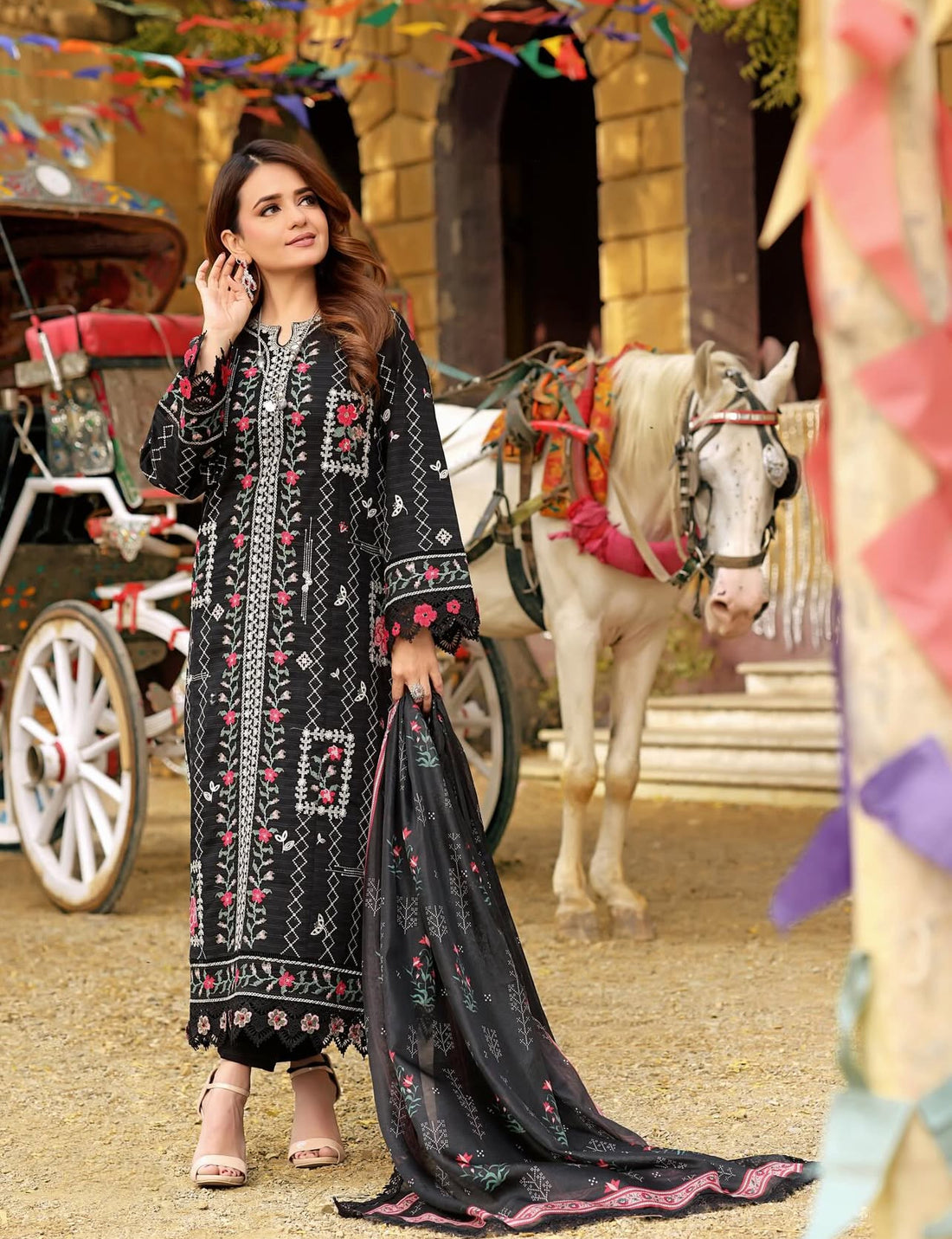 Aneela’s Black BW Embroidered 3 Piece Unstitched Luxury Lawn BA-0730-26