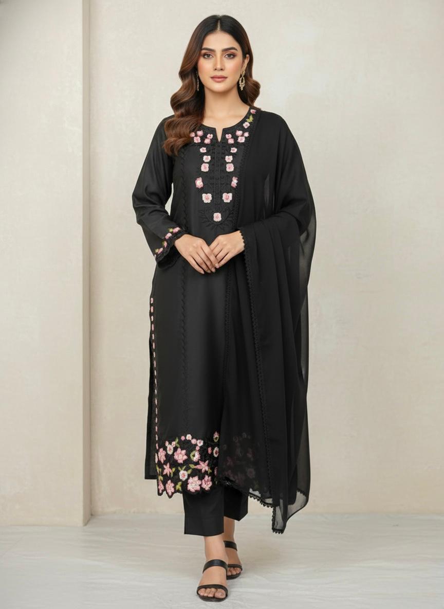 Republic Women’s Wear Black Embroidered 3 Piece Unstitched Luxury Lawn J-0547-26