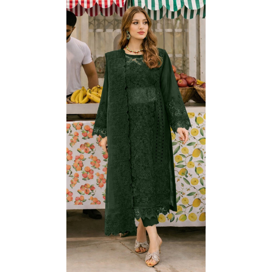 Chiffon fully heavy embroidered spangle work front and back Chiffon embroidered spangle work sleeves. Chiffon...