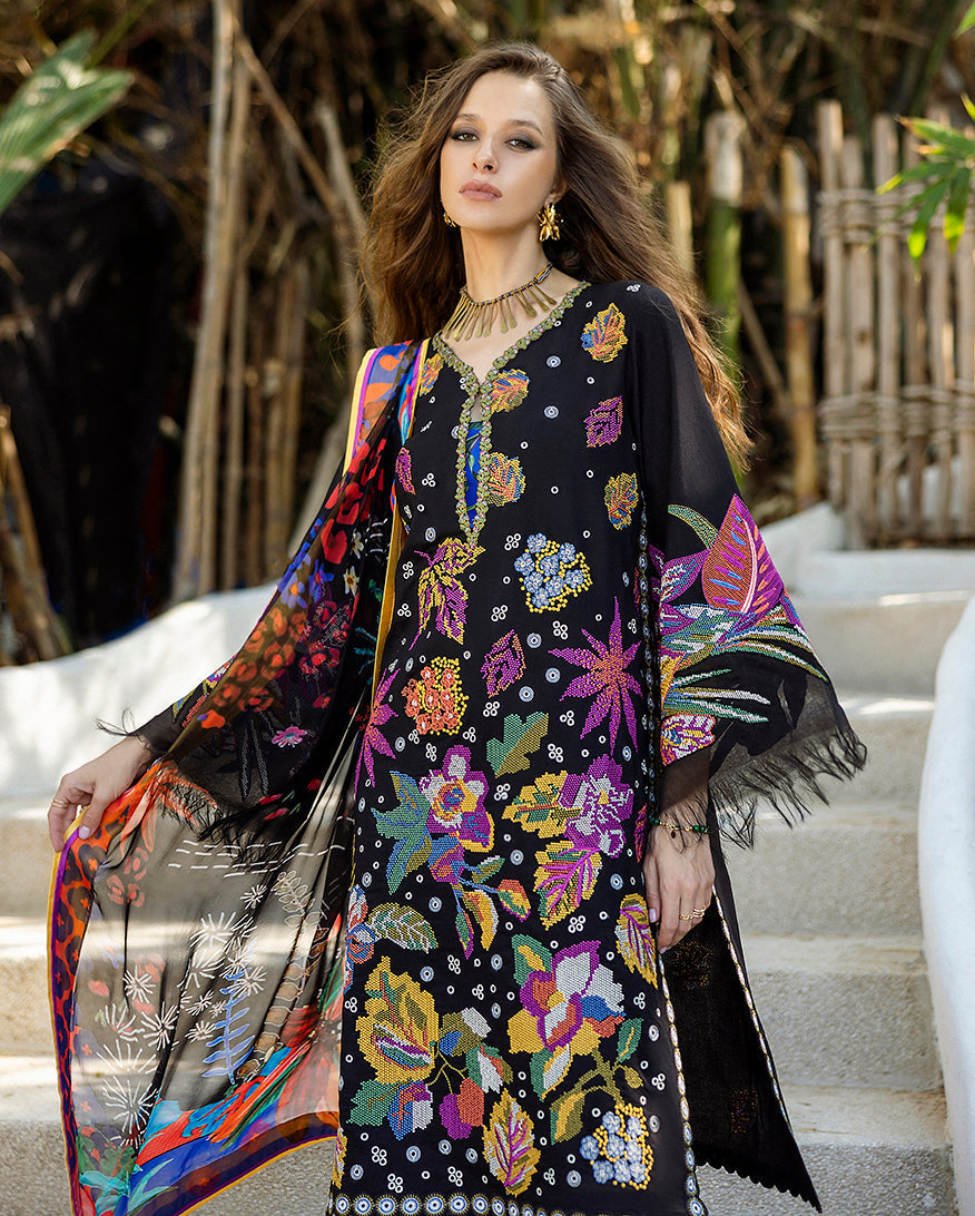 BA Black Multi Embroidered 3 Piece Unstitched Luxury Lawn BA-0773-26