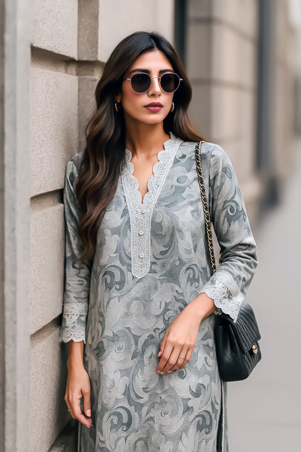 BA Grey Printed 3 Piece Unstitched Lawn HR-0656-26