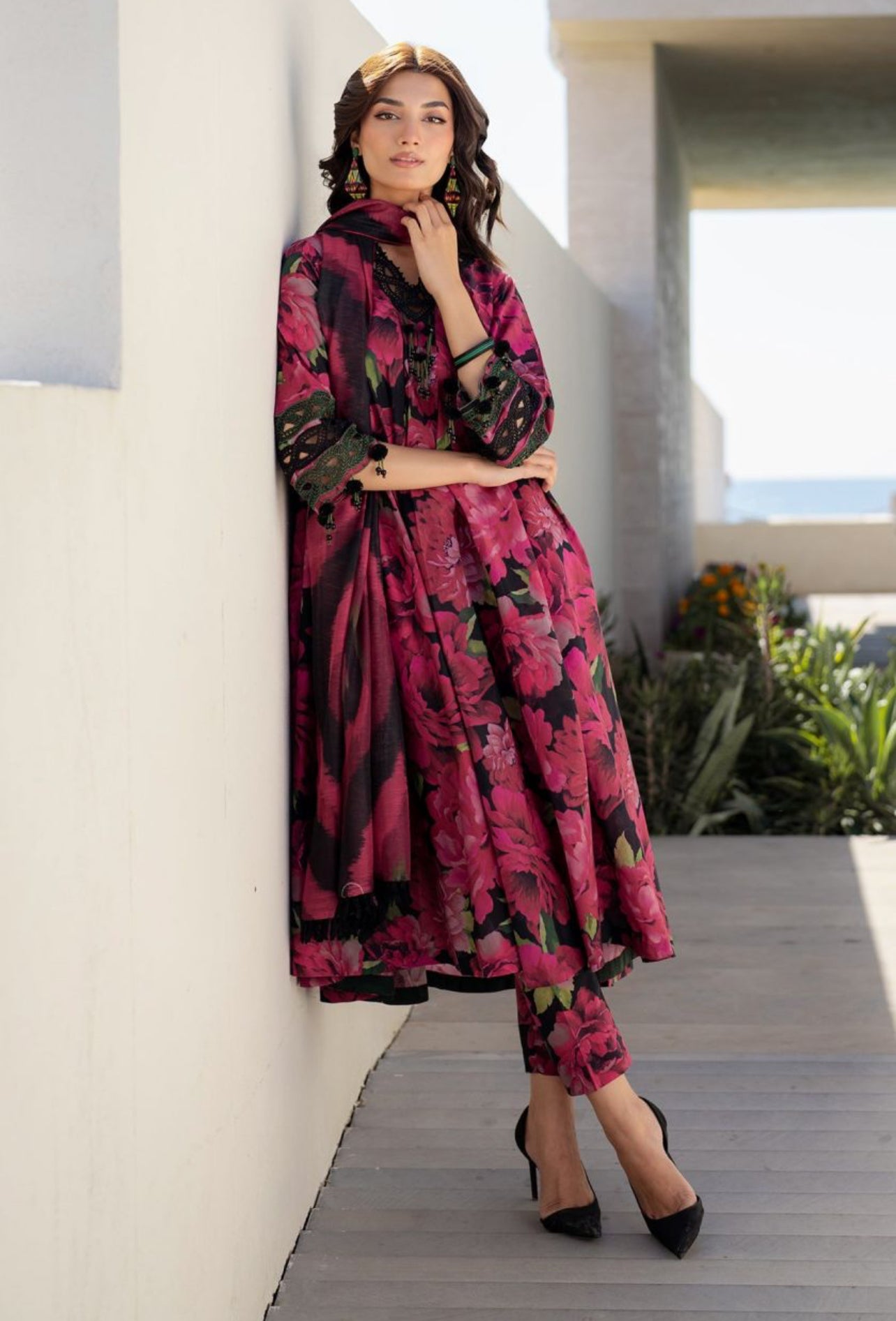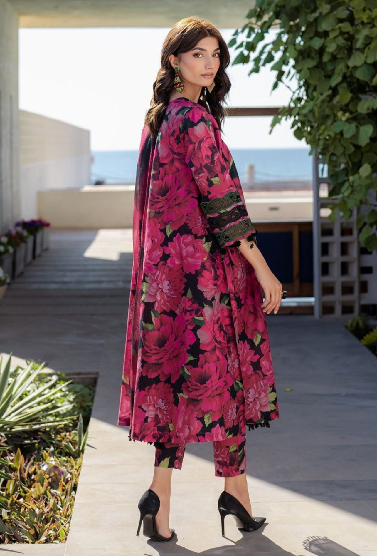 Baroque Black Floral Printed Linen AL-0084-25