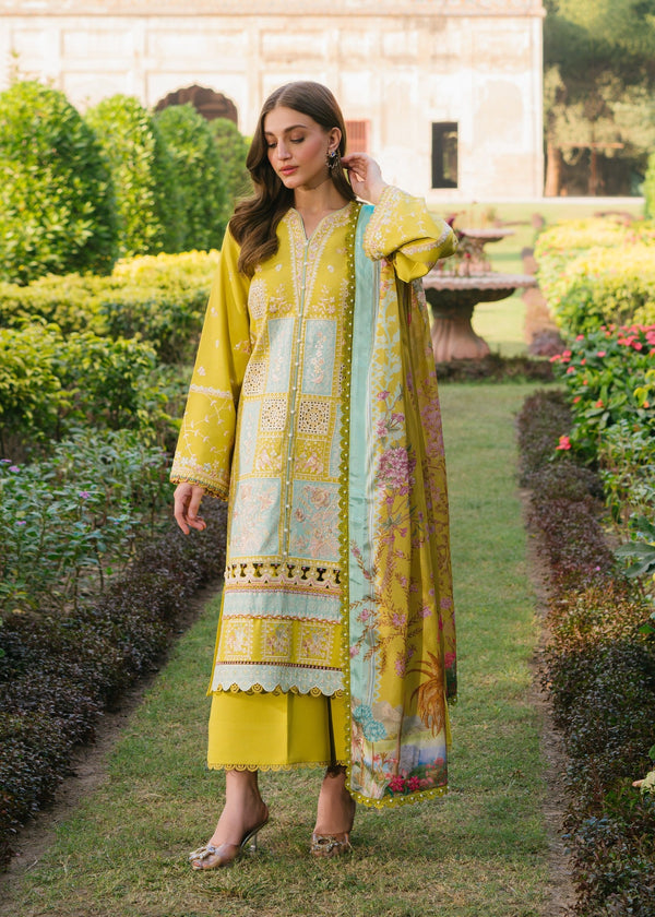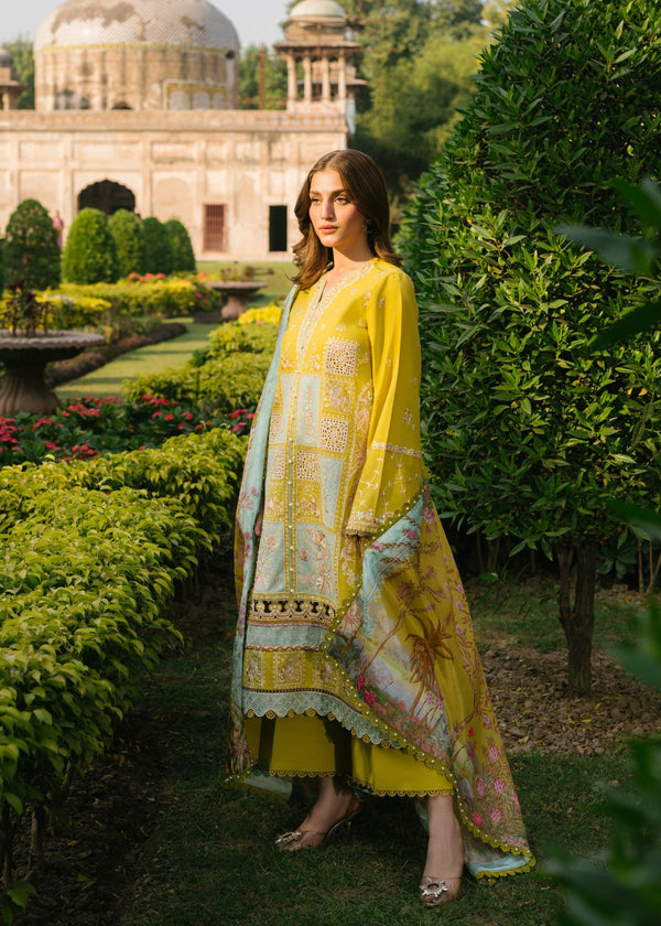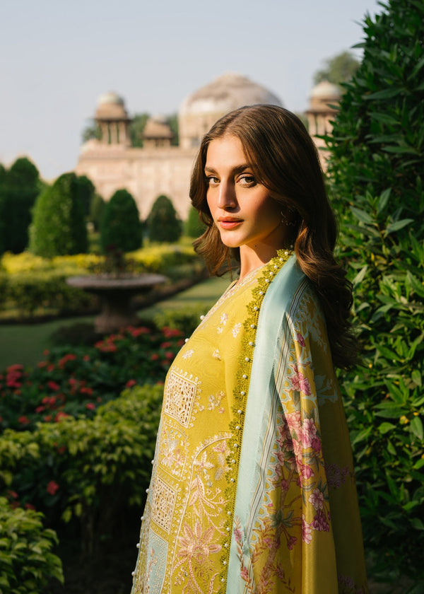Bin Ilyas Mustard Yellow Embroidered 3 Piece Unstitched Luxury Lawn WQ-0700-26