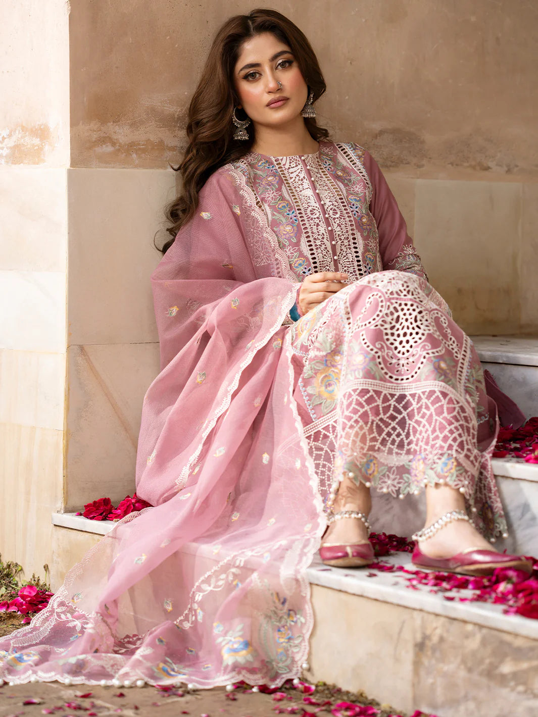 Bin Ilyas Pink Embroidered Chicken Kari 3 Piece Unstitched Lawn HR-0507-26