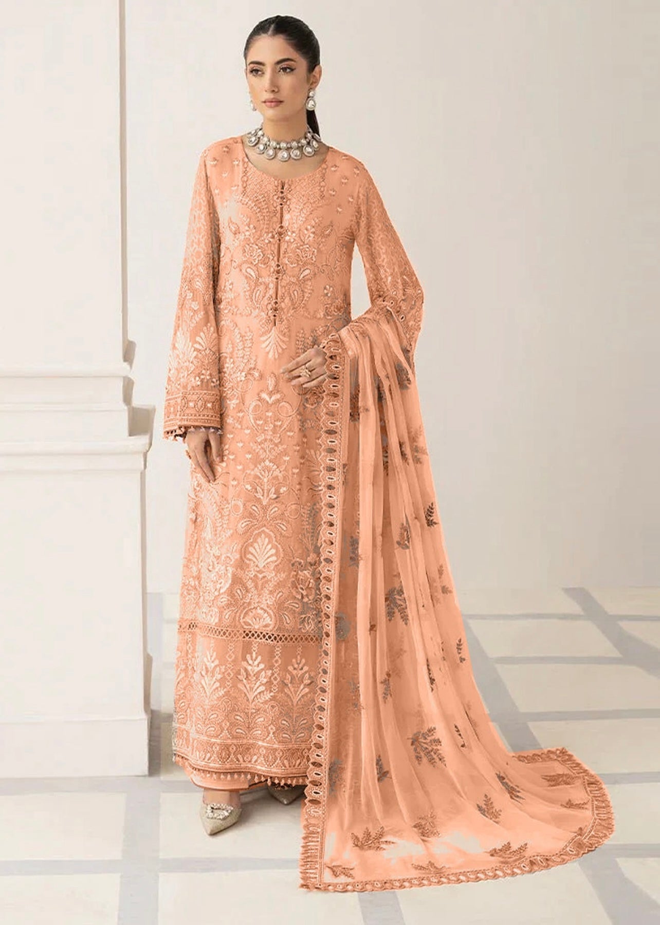 Flossie Orange Embroidered 3 Piece Unstitched Formal Chiffon HJ-0472-25