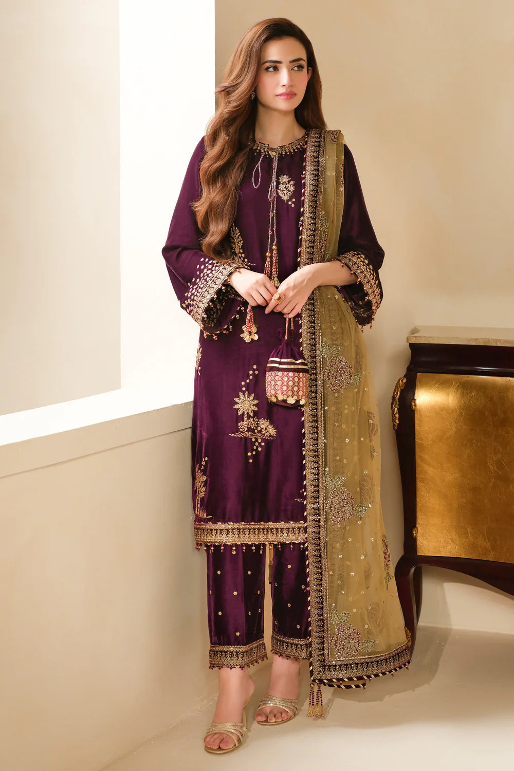 Jazmin Maroon Embroidered 3 Piece Unstitched Formal Velvet HR-0414-25