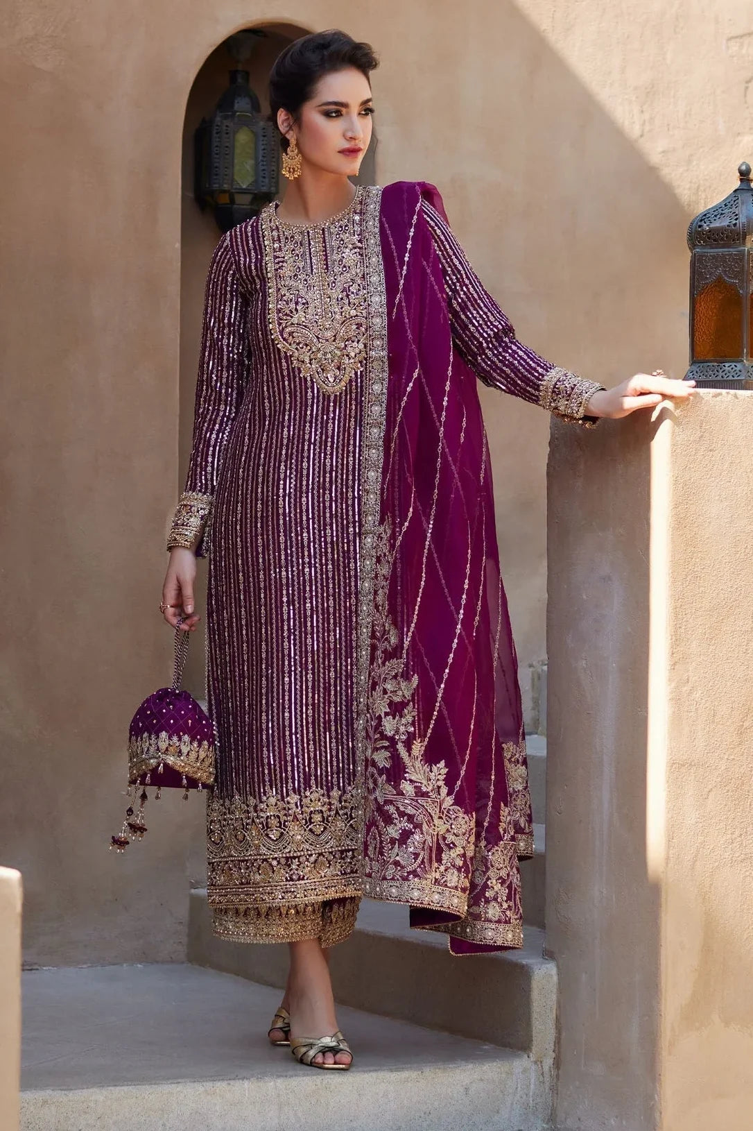 Kanwal Malik Shocking Pink Embroidered 3 Piece Unstitched Formal Chiffon J-0464-25