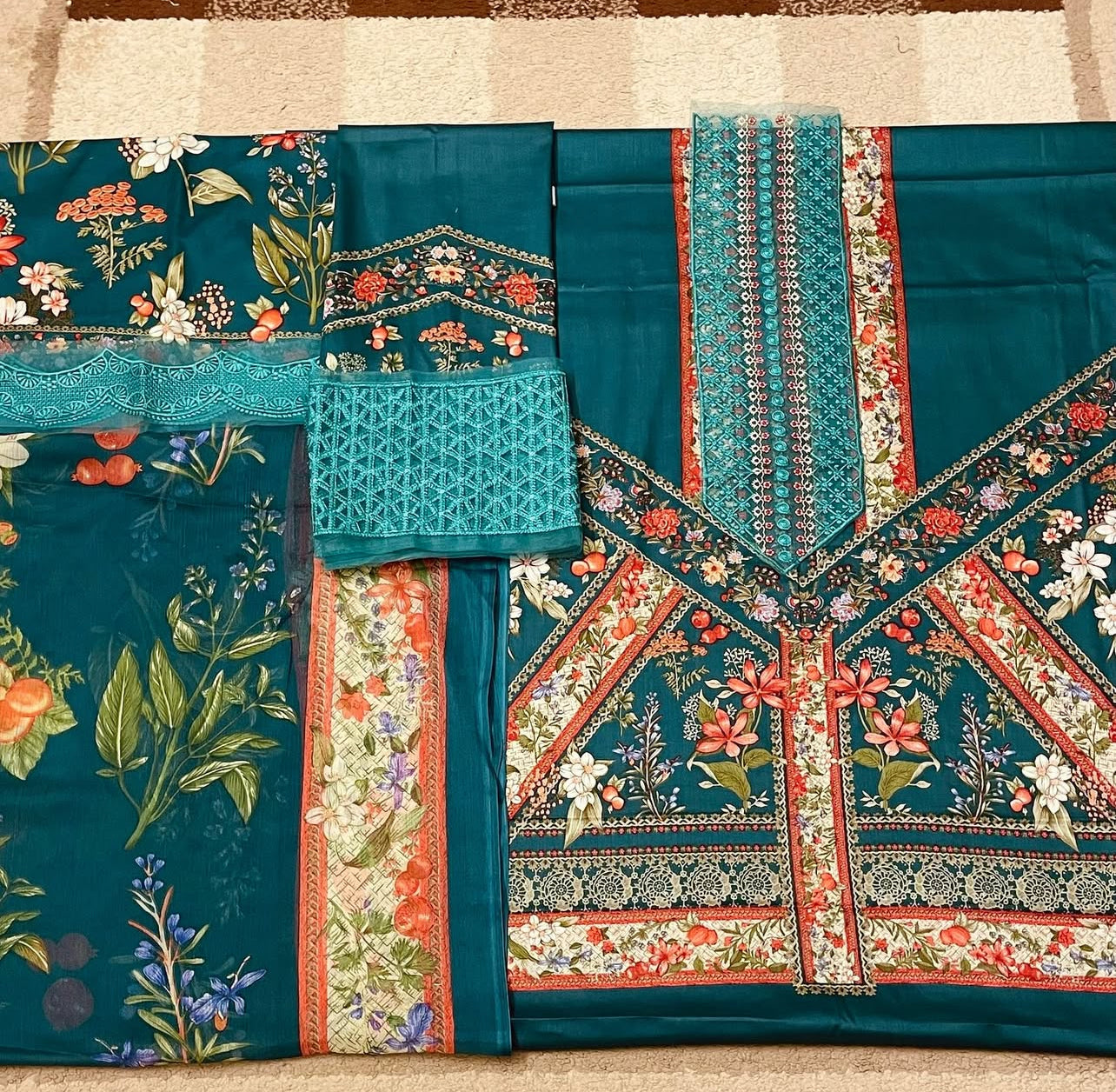 Coordinated digital printed chiffon dupatta with soft texture, completing the traditional look with grace and style.
