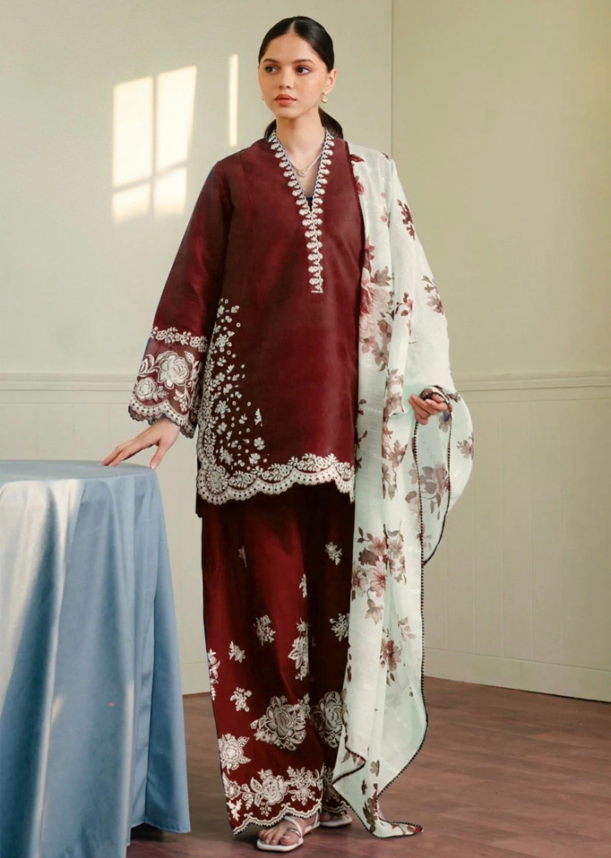 Zara Shah Jahan Coco Maroon Embroidered 3 Piece Unstitched Luxury Lawn HJ-0836-26